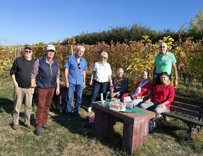 Dass man mitten im Weinberg Rast machen konnte, war für uns sehr überraschend. Die gute Wurst und das mitgebrachte Brot mit einem Schluck aus dem Becher ließ die Pause zu einem kleinen Erlebnis werden.